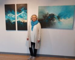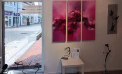 Nein, ich höre tief in mich hinein und bringe auf die Leinwand, was ich dort finde. Die Emotionen, die sich in meinen Bildern widerspiegeln, sind individuell und ursprünglich. Zu sehen sind Standbilder eines flüchtigen Moments, eingefangen als Farbexplosionen, aber doch nicht reproduzierbar.